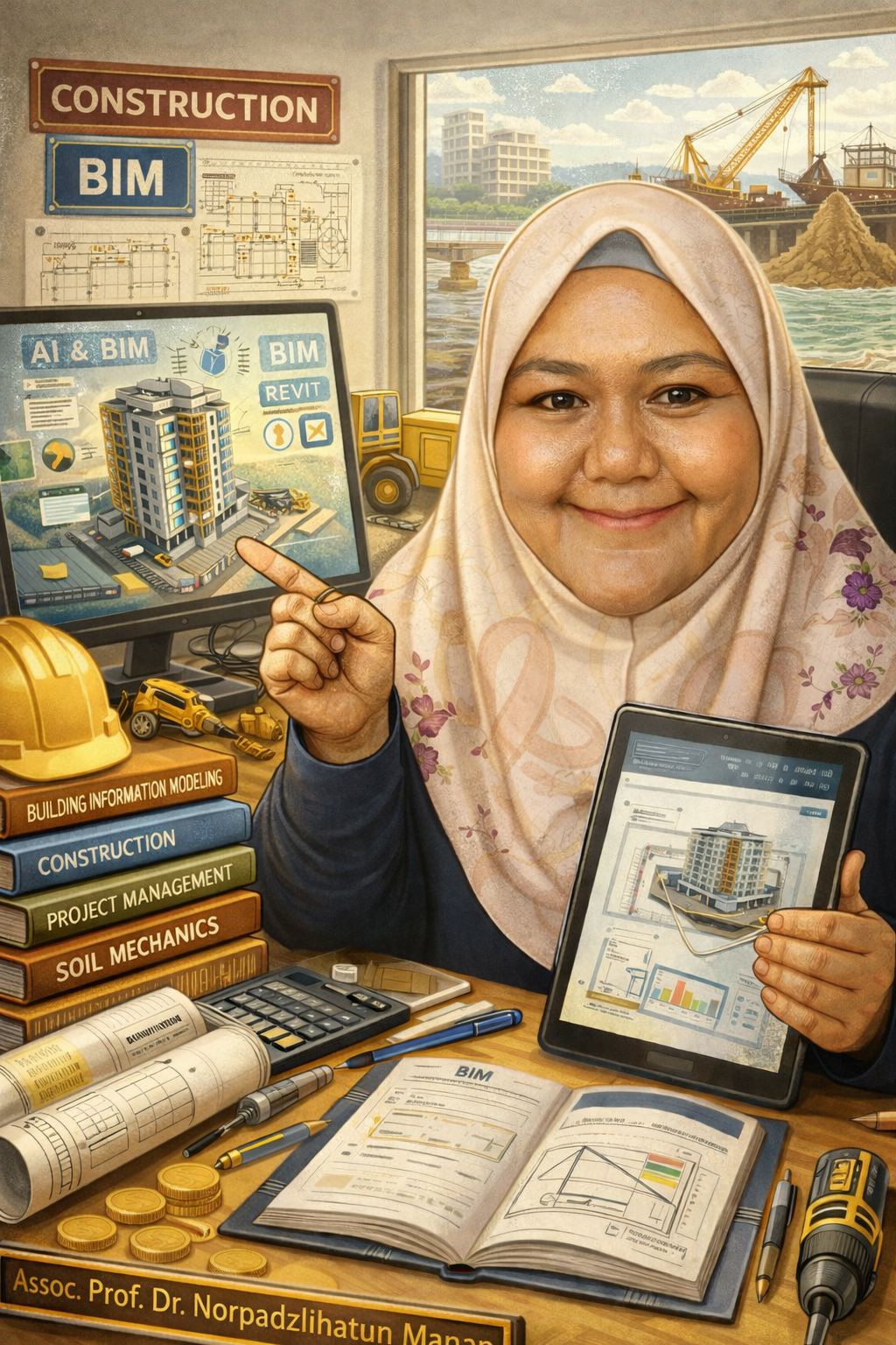This image captures a simple but meaningful part of my academic journey. On my desk are digital BIM models, soil mechanics references, and visual reminders of dredging and coastal works. Together, they represent the subjects I teach and research about, but each stands on its own with its own depth, challenges, and impact.